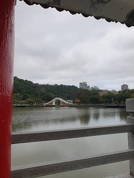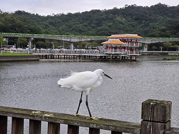 這裡的地標就是那個大拱橋,旁有一些人在釣魚,我在旁邊想這於釣回去你敢吃嗎?湖中可能有部分放水清淤,所以引來很多白鷺鷥覓食。