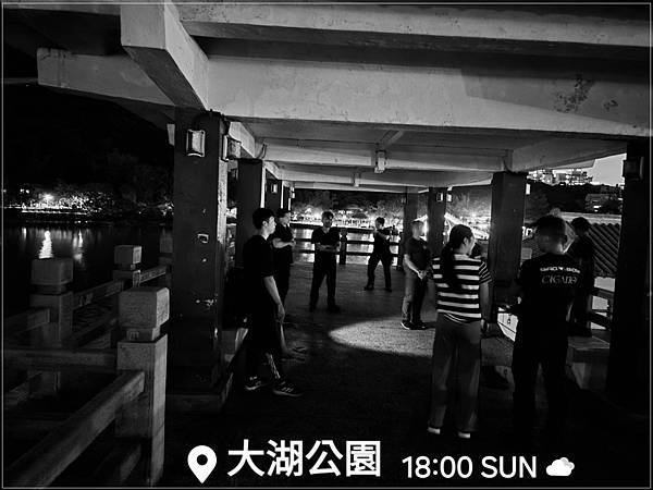 沒燈光的涼亭,大家真的是就只能在黑暗中摸索,常常看不清楚打出去的棍在哪個方位(鐵粉Jordy說:你是去了夜店吧!),小編想日據時代台灣拳的「暗館」該不會也是這樣吧?(武館田野調查的權威郭教授喝斥:並不是!),還有人打開手機手電筒照地板或照天花板來反射,大家如同在礦洞中挖礦般辛苦,還好沒多久涼亭的燈就亮了,人生總算重見光明!