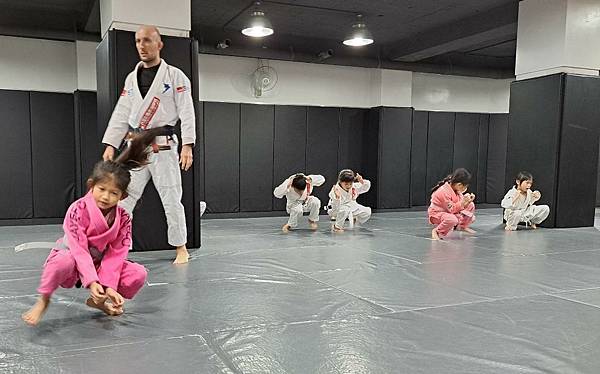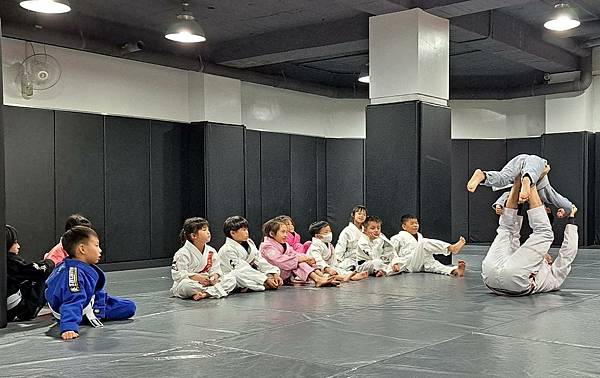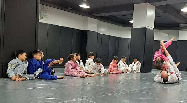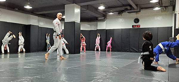 因為今天將介紹『巴投』的課程主題,所以 JP 教授特別加強孩子們的前後滾練習,小編看到現場好多紅白柔術衣滾來滾去,好像冬至吃的紅白湯圓,今天剛好是夏至,難不成柔術館的夏至也流行吃紅白湯圓嗎?