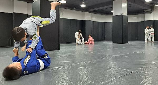 大家練習時都邊笑操作,有的人倒下去順便幫身邊的人搔癢,可見搔癢癢是小小朋友必備武器,話說網路上某一個 MMA 影片中,有人被鎖入三角勒 (Triangle) 了,居然嘗試去搔癢對方腳底看會不會笑到解開,真是絕了我的天公伯~