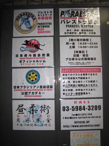 我曾在新宿ISAMI拿到有關青木真也的DM,說有在東京和術慧舟會教,後來去查該網頁沒有他的課,應該是過期的DM,而這次在PARAESTRA 總館得知青木真也有教在柔道課,不過因為某些因素沒有去拜訪他的課,實在很殘念!