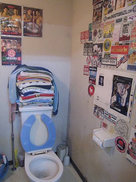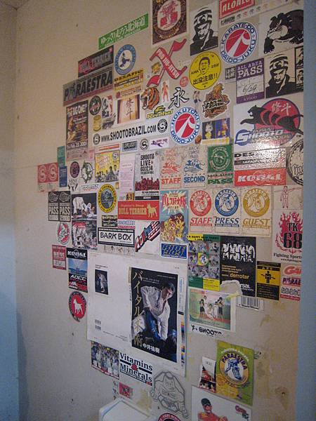 小編覺得廁所牆壁上的貼紙,可能每次大量跟格鬥用品店買東西,就會送一些貼紙,每次一到手不知道貼哪裡時候,剛好站在廁所旁邊就進去貼了 〈小編右拳頓左掌覺得:一定是這樣沒錯〉,不能免俗的也要進去廁所排泄一下,佔地盤似的留下到此一遊的紀念。