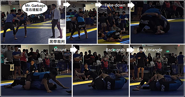 這是 Mr. Garbage 的冠軍賽,這場的裁判先生呢,經過小編暗中調查是馬來西亞籍的黑帶,因為他長得跟台灣某位以色列格鬥術的教練很像,臉盲北怪調查起來真的很辛苦。