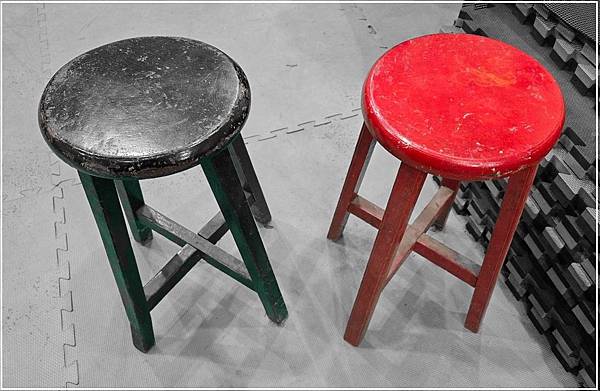 會場有著歷史悠久的簡樸佈置,像是上圖的實心木椅用碳14放射法來估算,應該也有四十年以上的歷史,而現場多處角落所放置的武器和武術用品,都呈現長年使用過的痕跡,足見前人先輩們日積月累的用心。