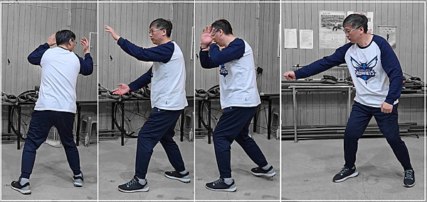 八卦硬掌由簡亞娟師姐演練,一般可為直線的練法,但亦可作轉圈的練法,簡師姐是採直線方式熟練走架,有著行雲流水的風格。