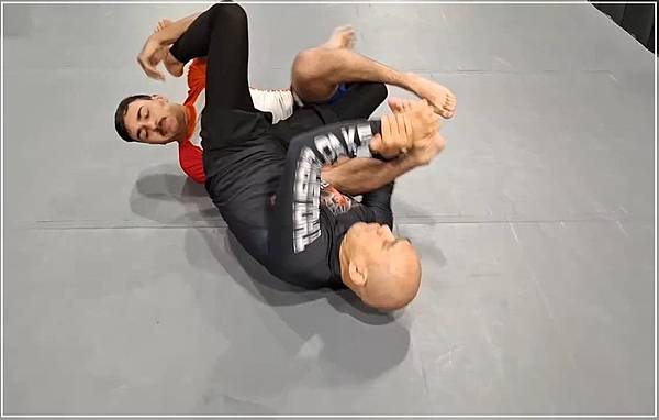 當然在攻方已是多變的模式下,因此守方也多出詭譎的反攻,You教授介紹了〈用自己肚子卡住對方的腳〉,再用 Toe hold 解決它。