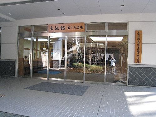 記者到了武道場, 除了練武的人, 閒雜人等只剩我一人, 我到第一館(明治神宮武道場, 如下圖), 有聽到練習的聲音, 可能是劍道練習前的熱身, 我進去玄關, 好像又要脫鞋, 裡面的練武的人都在忙一些東西, 覺得氣氛不大妙, 好像是陳真一人去虹口道館的感覺, 我就出來了, 畢竟我沒準備"東亞病夫"匾額給他門吃。
