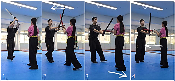 最後是把護具拿掉,好好地磨練今天的主題技巧 — 在敵我長刀對劈時, 教練 退步讓出空間好使我長刀刺擊,在時間空間上算是跑操場切西瓜般,搶了半拍也走了捷徑,讓敵人眼睜睜看城門被攻破。