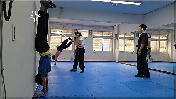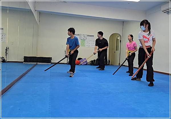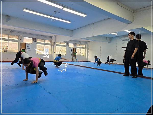 就在某年某月的某一天,小編爬上位於四樓海拔的武術教室,我來介紹教室內的學員有:藍底迪、粉紅妹、白姐姐,他們多是國小中高年級,已經有著數年的習武經驗,也早已養成練武的習慣。