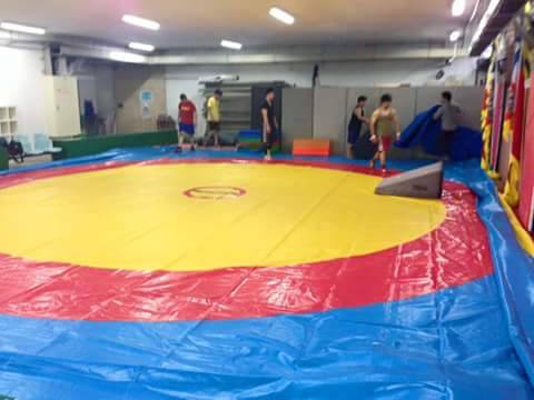 記者走到地下室,看到三大練習場緊連著,分別是合氣道場、跆拳道場、角力場,嘎的這是怎樣!在寸土寸金的台北市,很多拳館坪數都比這邊單一練習場還要小,這邊竟然有三倍大,這是讓人吃到飽嗎?〈小編覺得:會被打一頓粗飽 〉,角力場上除了今天第一堂課教學的何教練外,還有:知名度超高的小胖、得過名的高中哥、穿錯衣服的柔道弟、晚來的社會叔、莫名搞笑的拳擊弟。
