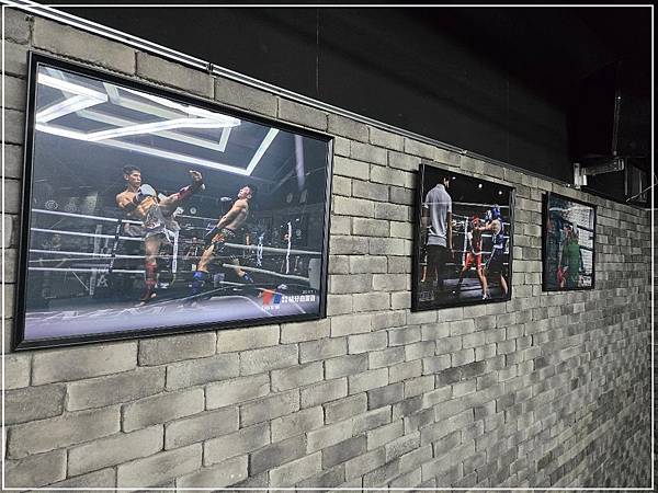 擂台旁的牆上掛著一排拳手的大幅相片,偉聖教練說每一幅相片都有獨特的故事,像是:『52歲消防員從零開始練到比賽的故事、自律跑步一小時的遠地高中生、中學生因拳擊走回正途的歷程、從90多公斤大幅減重成精壯男的對戰故事(這有點像第一神拳漫畫的鷹村大幅減重拿六個量級的冠軍)、更有某教練的當年菜鳥照(如果沒有這些紀錄相片,我還以為大家都是一生下來就當教練的說)』。