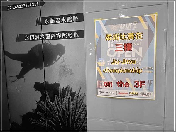 小編一進南港運動中心,在一樓櫃台附近就放看牌註明比賽在3樓,還有電梯旁也有告示,足見規模之大,人數多到需要讓中心的人立告示,小編在空氣中瀰漫著工作人員的「賣購捫阿啦,夠煩!」怨念,果然到了3樓的現場真是擠滿了 人,雖然小編的理性腦知道〈要比賽和看比賽的人才會來〉,但小編的隨便腦卻還是認定〈全台灣練柔術的人都來了〉。
