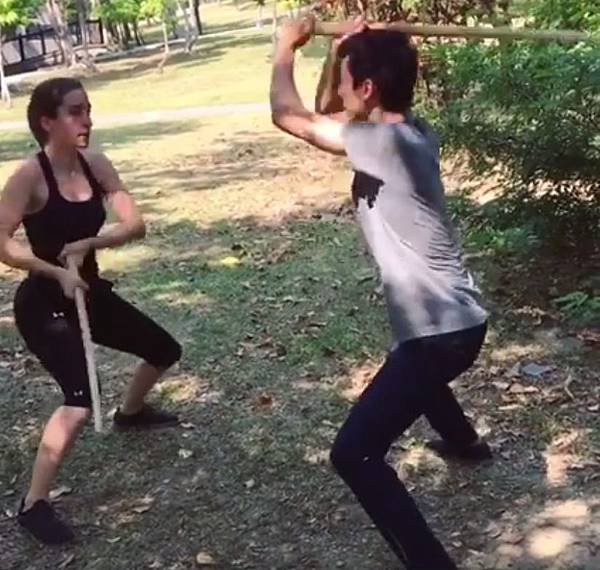 記者在某年某月的某一天來到大安森林公園,參訪台北武道會室外的『組太刀課程』,一大早的公園處處都有各式各樣的活動,太極拳團體的、不知所以功操的、家庭玩樂的、大學生團康活動的都各據山頭,在公園舞台附近樹林間找到台北武道會練習,現場有兩位老師和兩位學生,分別是ED老師、Maxi老師、壯碩哥、怪奇哥。課程一開始,他們就開始用木刀做五百下素振(往前直砍算一下),根據ED老師說他以前在紐約武道會練習時候,大家都會相約以1000下素振度過跨年,敲瘋狂滴,大家都聚精會神的揮打和數打了幾下,雖說冬天寒溫令人發冷,但是大家在三百下左右就有點冒汗小喘氣了(中醫師認證:這一定是舒緩五十肩疼痛的良方),總算大家打完五百下了,這個真是超負荷的熱身阿,像是小編這種整天on-line的澳洲來的少年,這算是一天的運動量了吧,根本累到吃手手了!ED老師跟記者說這種素振有他的要求,遵循著柳心照智流的要求,像是陰陽和身力的特色,所以這個跟一般合氣劍和劍道的素振很不一樣的說。