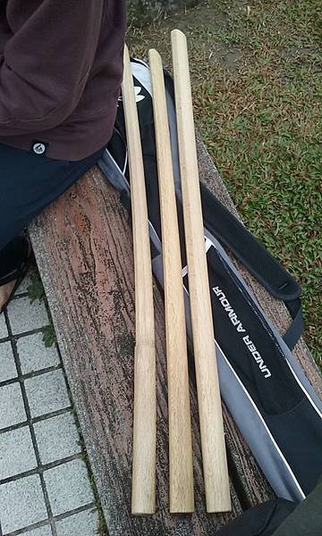右邊造型奇特的素振刀是鹿島古流武術的用刀,比起一般木劍還要重,教練說左邊兩把白樫木劍約台幣1500左右,小編想起之前看過台灣赤樫木劍約台幣300就可以買到了。