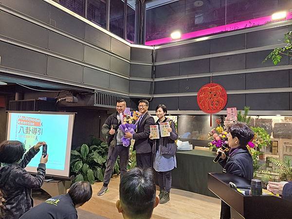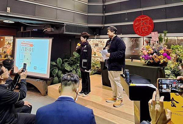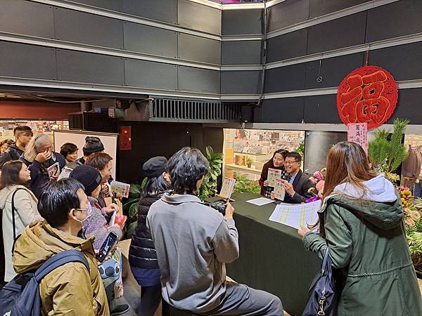 之後是聽眾們獻花,有人送象徵導引長久的永生花,有人送的花放了兩包洋芋片,kuso小編還就這點很認真的問張教授高徒吳哥,吳哥說可能張教授習慣西式飲食的緣故吧。最後一小時是簽書會,滿滿長龍有如八卦掌的『伸筋拔骨』要點,張教授似乎一一幫排隊每個環節檢視是否有充分伸拔,此時大家常常邊簽邊要求合照,甚至現場還有像是張雅琴主播那種大牌子,可供拍照使用,實在超級歡樂的,如果吳樂天也在現場,他應該會開始講古『講八卦、說八卦、八卦說不盡』。