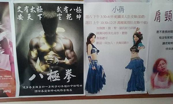 (文山運動中心海報欄上有正妹小蒨‧恩‧‧‧國術招生)