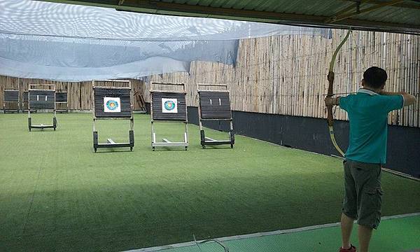 編號08的記者在某年某月的某一天,到內湖運動中心參訪射箭課程〈我們可以把這句話簡稱為:內‧‧‧箭〉,這是個位在頂樓的射箭場,四周有防護牆和防護網。第一次來射箭場的人,還要先上課了解安全規定,以及有那些護具和裝備。說到護具,有戴在手左小臂內側的護手,還有穿戴右中指上,用來保護右手中指和無名指的指套,說到這個,小編暗暗立誓以後不幫人戴指套〈違背誓言的話,我就委屈讓正妹折磨整天〉,因為幫人套指套對方都要伸出中指罵你,有種被侮辱又不能告死他的悲哀。