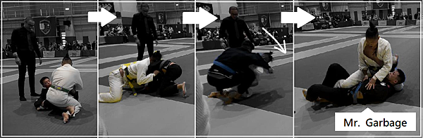 這次的 Mr. Garbage 輸了兩場比賽,真的對手很強,因為小編有去看他賽前的練習情形,用武俠劇的術語來講,就是他技巧功力已經突破藍帶第七層關卡,整個人算是進化過了,無奈道高一尺,魔高一丈,姨丈來也無法幫你贏。