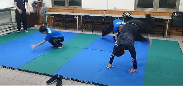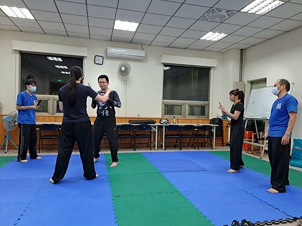 這天的課程除了熱身外分成三個主題:細調熱身動作、短刀格鬥、拳腳實戰,足見此(PLUS的三次方)將讓敵方受到三重擊,保證給歹人呷粗飽回家。