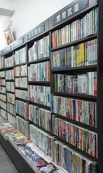 最後他又搬家到下面這裡了,一樓的門進去第一個書櫃就是武術書,敲誇張
