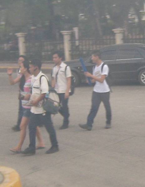 來到宿霧導的街頭,小編假裝自己是(處女座男生),用非常注意每個細節的態度,果然看到遠方牆上有UFC的廣告,如果街頭牆上UFC廣告是個指標的話,台灣的武術發展還不如菲律賓進步呢。又看到下圖學生放學時候,拿著菲律賓魔杖長度的棍套,這應該學校是有開菲律賓魔杖社團活動。