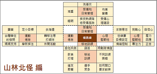 楊勇緯為大家所知的是他使用九宮格法管理運動生涯,小編今日也嘗試用九宮格整理參訪內容,棒棒吧!