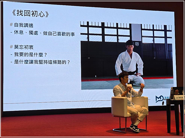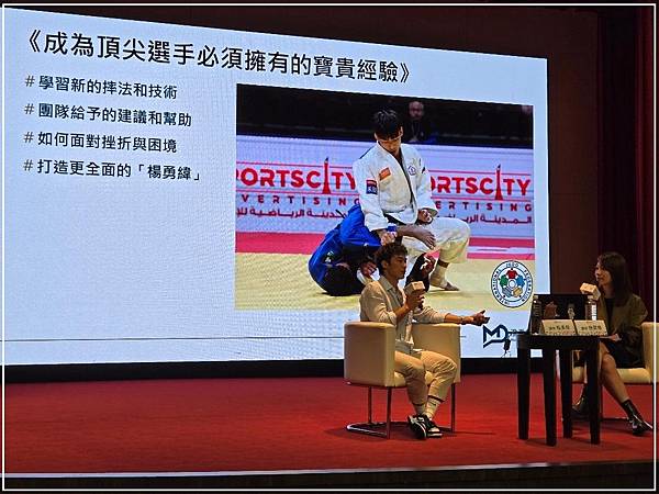 楊勇緯曾在其他訪談提到今天對摔時哪一招摔成功,我會一直記著這個摔的感覺並且把這想法放大,而今天講座他更是把這觀念應用在其事情上,這真是運動選手切身需要的方法,其實上一段他所提到的在訓練時設定小成就,也是很好強化自信心的很好方式喔!