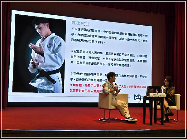 其實在講座前小編就準備好 Q&A 的問題,而且為了發問舉手比別人快,還花了好一些時間勤練柔道搶手(有人研究說搶手比拳擊出拳快,所以練拳擊沒幫助我跟你講),而且我的搶手還有外加功能,因為我多練了(如何解十字固)以避免有人趁我舉手時做我十字固,畢竟在 Q&A 發問的世界是很殘酷的,總之我一定要讓奧運銀牌讚嘆我勤練的柔道搶手。